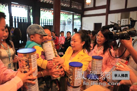 貝因美代表發(fā)奶粉 圖片來源:鳳凰網華人佛教