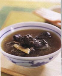 藥材與烏雞放入燉盅內(nèi),加8杯水,隔水燉4小時后加鹽調(diào)味。