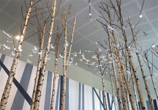 白樺樹(shù)是長(zhǎng)白山最常見(jiàn)的樹(shù)種之一。工廠展廳內(nèi)裝點(diǎn)著白樺樹(shù)的樹(shù)干,置身其中,能感受到濃重的自然氣息。