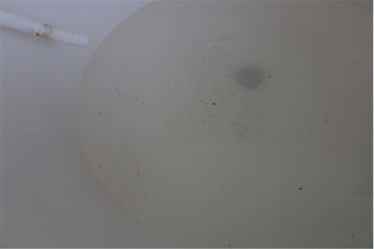 然后,我們將桶內(nèi)水放干凈,大家可以看到,大范圍的殘余污垢,附著在表面。