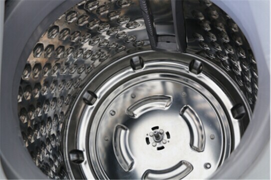 該圖為普通洗衣機(jī)的底部設(shè)計(jì),塑料波輪,采用防松螺釘緊固,普通用戶無法拆卸,波輪與內(nèi)桶底之間形成第二個(gè)藏污夾層,也就是說這里也容易藏污納垢。