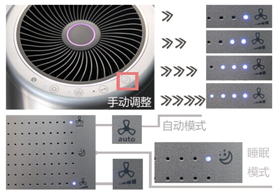 自動模式下,空氣凈化器能夠自動感知室內(nèi)的空氣質(zhì)量(污染程度而自行啟動),并根據(jù)自動模式-睡眠模式-低速模式-中速模式-高速模式-極速模式的順序反復切換。