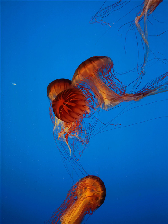 蜿蜒的隧道里,魚兒們成群結(jié)隊地歡快游泳,平時只在電視上見過的種類,小朋友在這里大飽眼福,講解員耐心介紹魚類的生活習(xí)性,他們聽得津津有味。