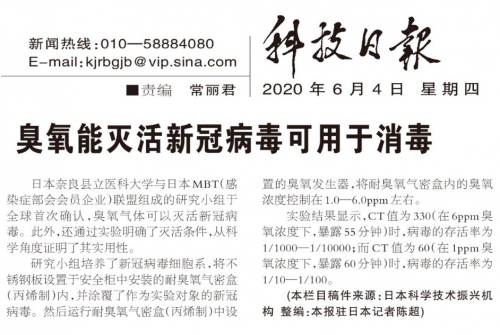據(jù)美國(guó)麻州LARUCK實(shí)驗(yàn)室權(quán)威檢測(cè),僅需30秒,Enozo 臭氧水對(duì)大部分常見菌殺菌率可達(dá)99.9%。在2020年嚴(yán)峻的新冠疫情形勢(shì)下,多國(guó)專家把視線轉(zhuǎn)向臭氧水,并就其對(duì)新冠病毒的作用展開研究實(shí)驗(yàn)。日本藤田醫(yī)科大學(xué)的村田貴之教授,以及奈良縣立醫(yī)科大學(xué)與日本MBT聯(lián)盟組成的研究小組均確認(rèn):通過對(duì)臭氧水的研究證實(shí),適宜濃度的臭氧水,具備殺死新冠病毒COVID-19的功效。