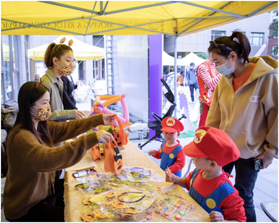 前來參與活動(dòng)的家庭,不僅可以免費(fèi)體驗(yàn)畫面具、投籃游戲機(jī)和小丑制作的創(chuàng)意氣球 ,他們還可以花時(shí)間逛一逛集市,挑選一些適合自己家庭和寶貝的萬圣裝飾和母嬰用品。